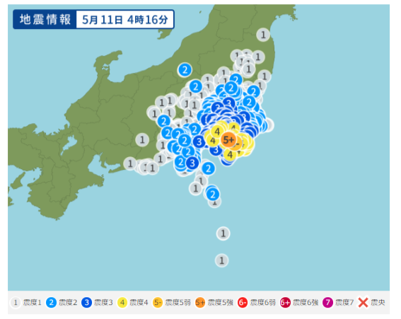 【最大震度5強】2023年5月11日4時16分頃・千葉県南部震源の地震について