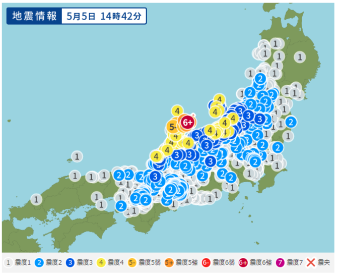 【最大震度6強】2023年5月5日14時42分頃・石川県能登地方震源の地震について