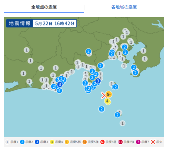 【5/22 16:42頃発生】伊豆諸島で発生した地震の概要